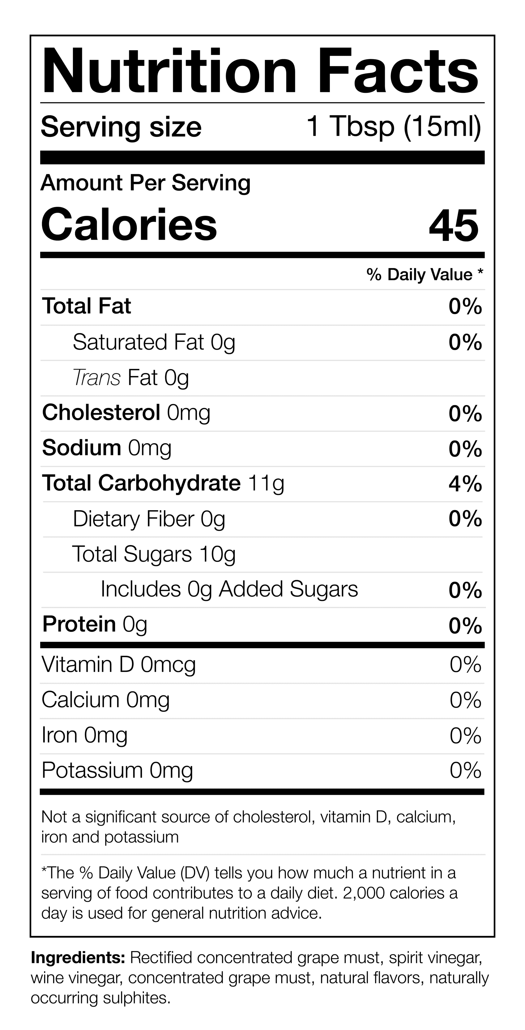 Ingredients: Grape must, white wine vinegar, natural flavors, naturally occurring sulfites.